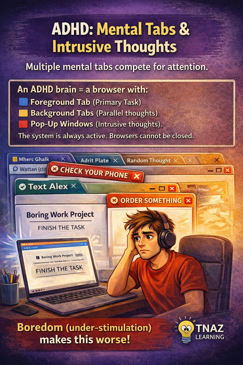 Most people have an Importance-Based Nervous System (they can focus on a task because it is "important," has a deadline, or a reward). The ADHD brain has an Interest-Based Nervous System.