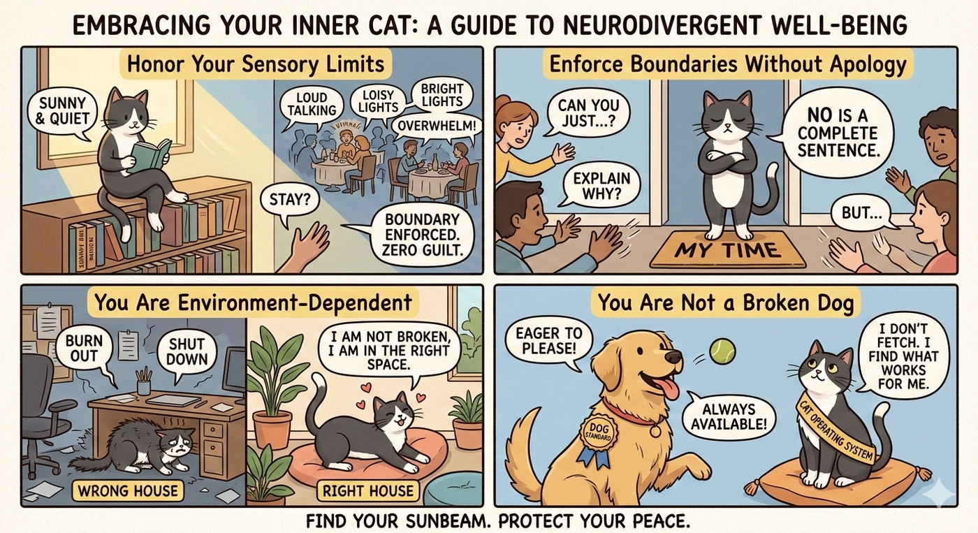 The Cat Lesson: Stop trying to force yourself to function in environments that drain you. Start looking for—or creating—spaces where your nervous system can finally relax.