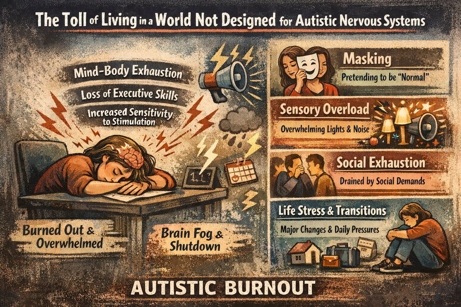Long-term nervous system exhaustion from living in environments not designed for autistic brains.
